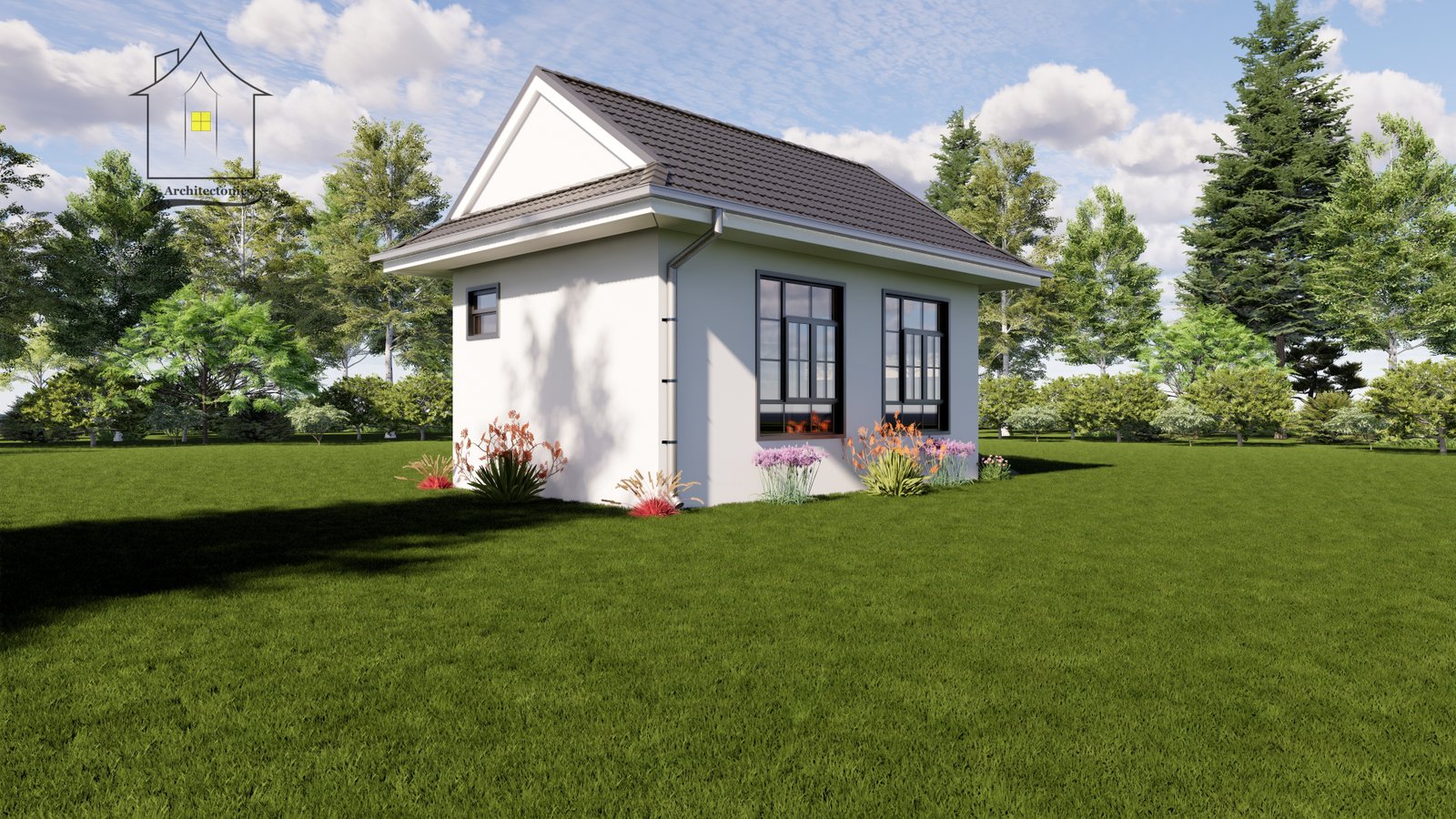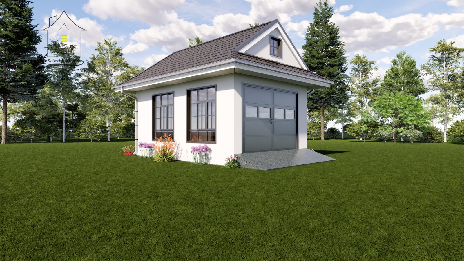 This compact storage unit design includes a spacious storage area, a convenient washroom, and a small office space for efficient management and operations.