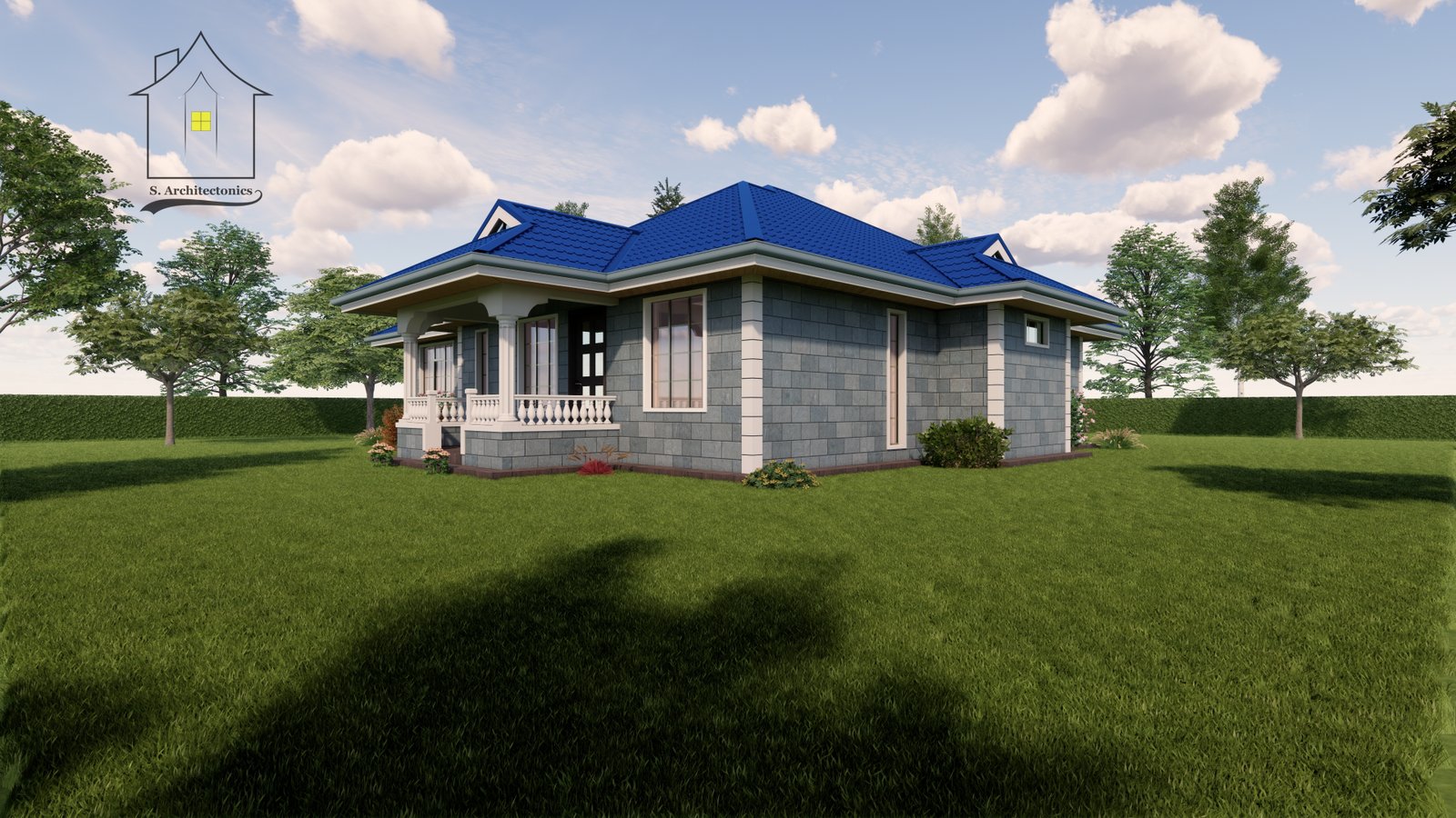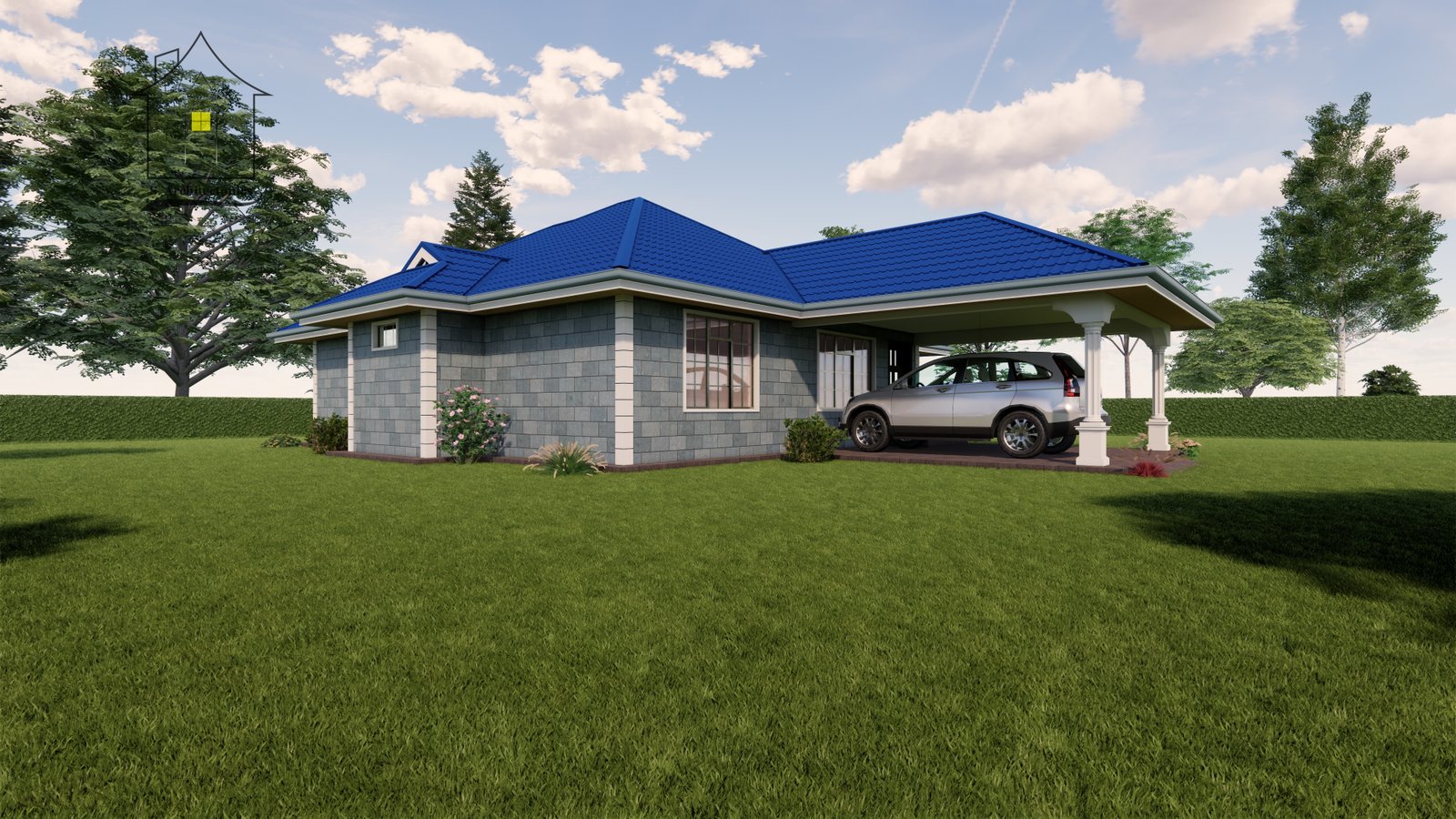 A beautiful two bedroom bungalow with a plinth area of 159 square meters (17.5 x 13.3 meters).