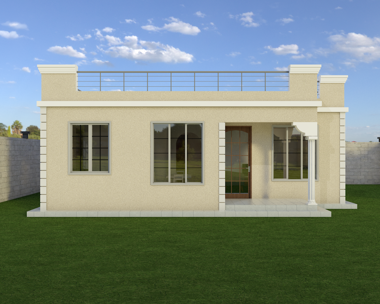 A nice three bedroom bungalow – flat roof with a plinth area of 101 Sq. meters (10.5 x 10.4 meters).