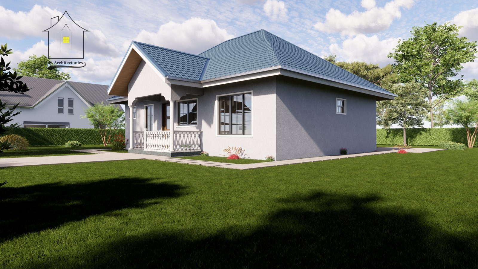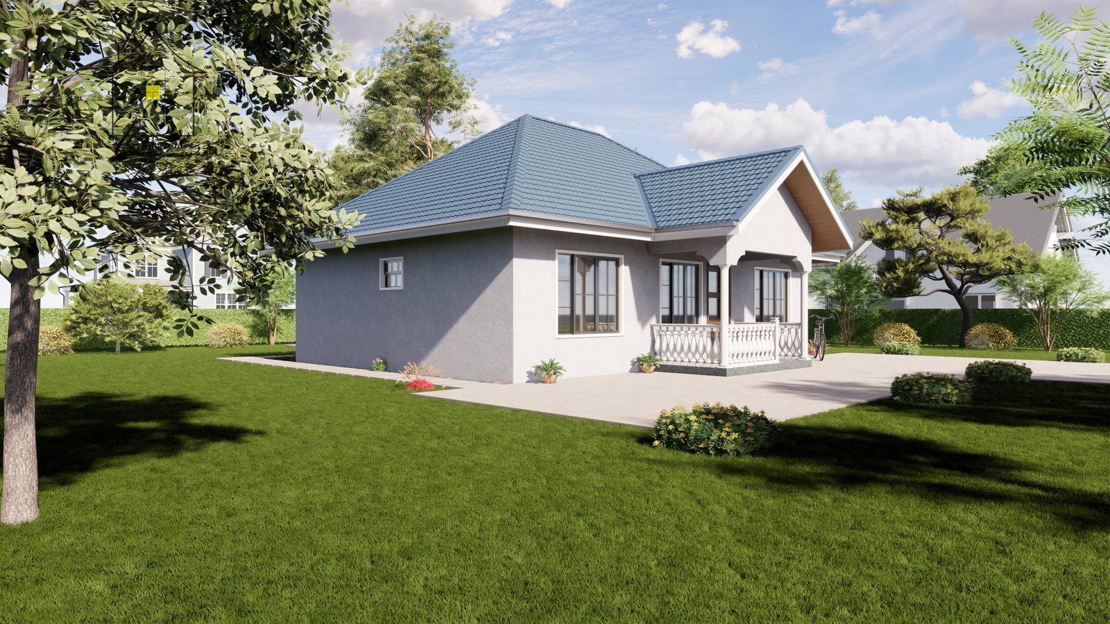 Discover the perfect blend of simplicity and charm with this 94 sq. meter 3-bedroom house design. Featuring a cozy front porch, a combined lounge and dining area, a functional kitchen with pantry, a study room, two spacious bedrooms, and a common washroom. The primary bedroom offers privacy with an ensuite bathroom, making this design ideal for comfortable family living.