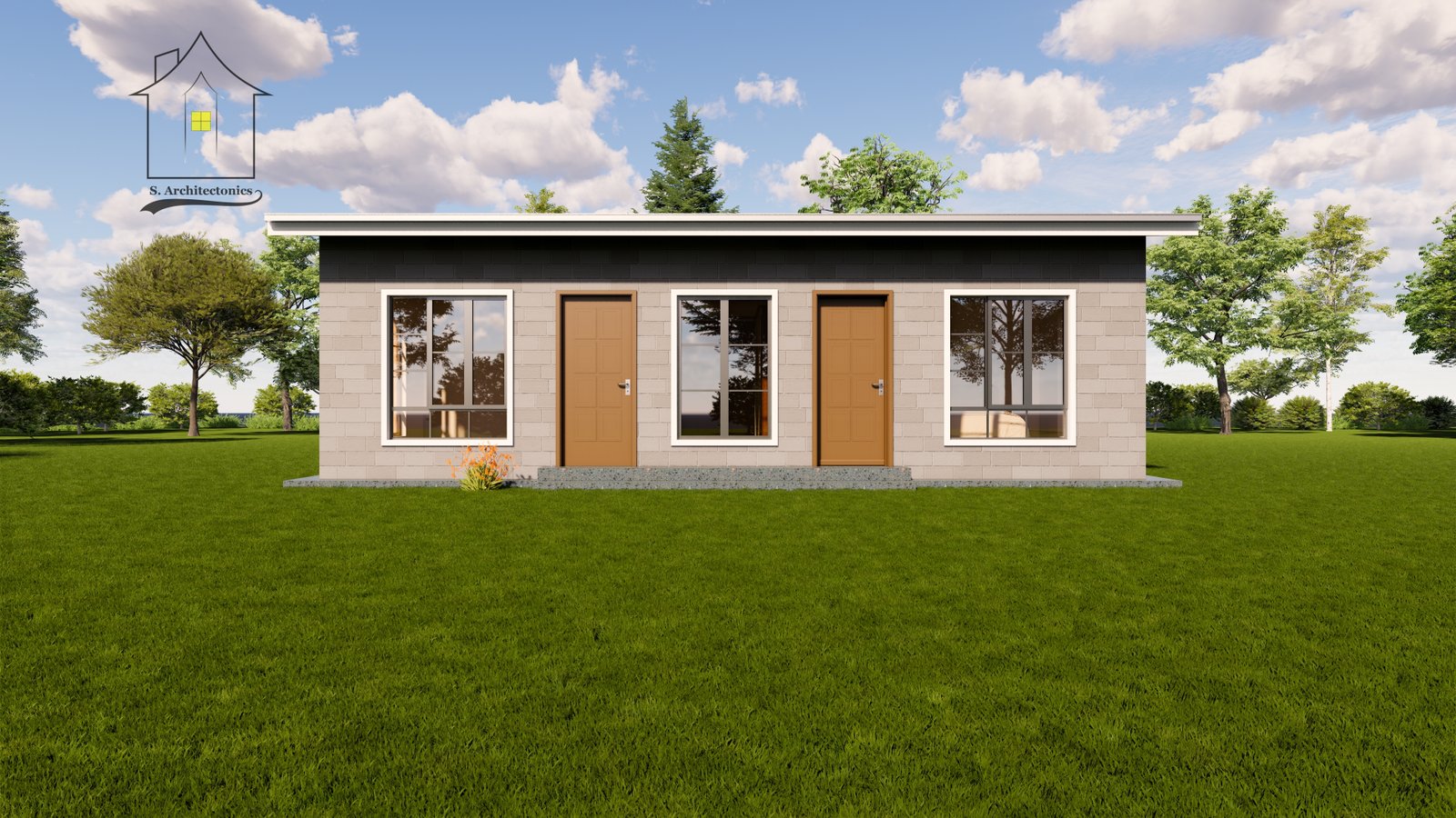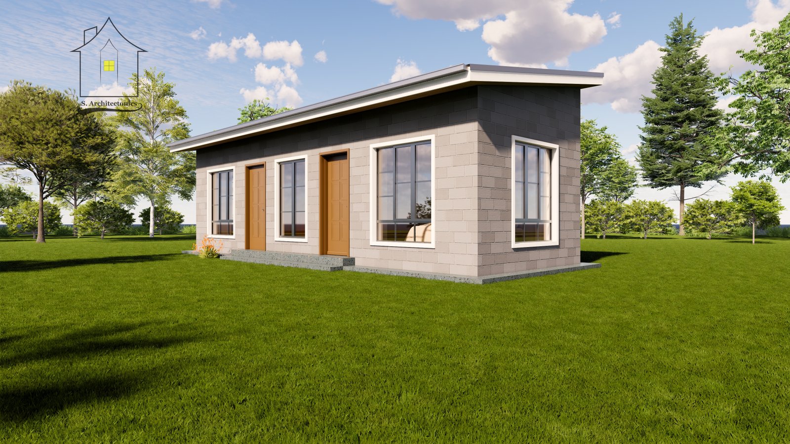 This simple 35-square-meter (10 x 3.5 meters) design is ideal for agricultural settings, offering combined functionality with accommodations for staff quarters and a storage area. Its compact and efficient layout makes it a practical solution for farm operations.