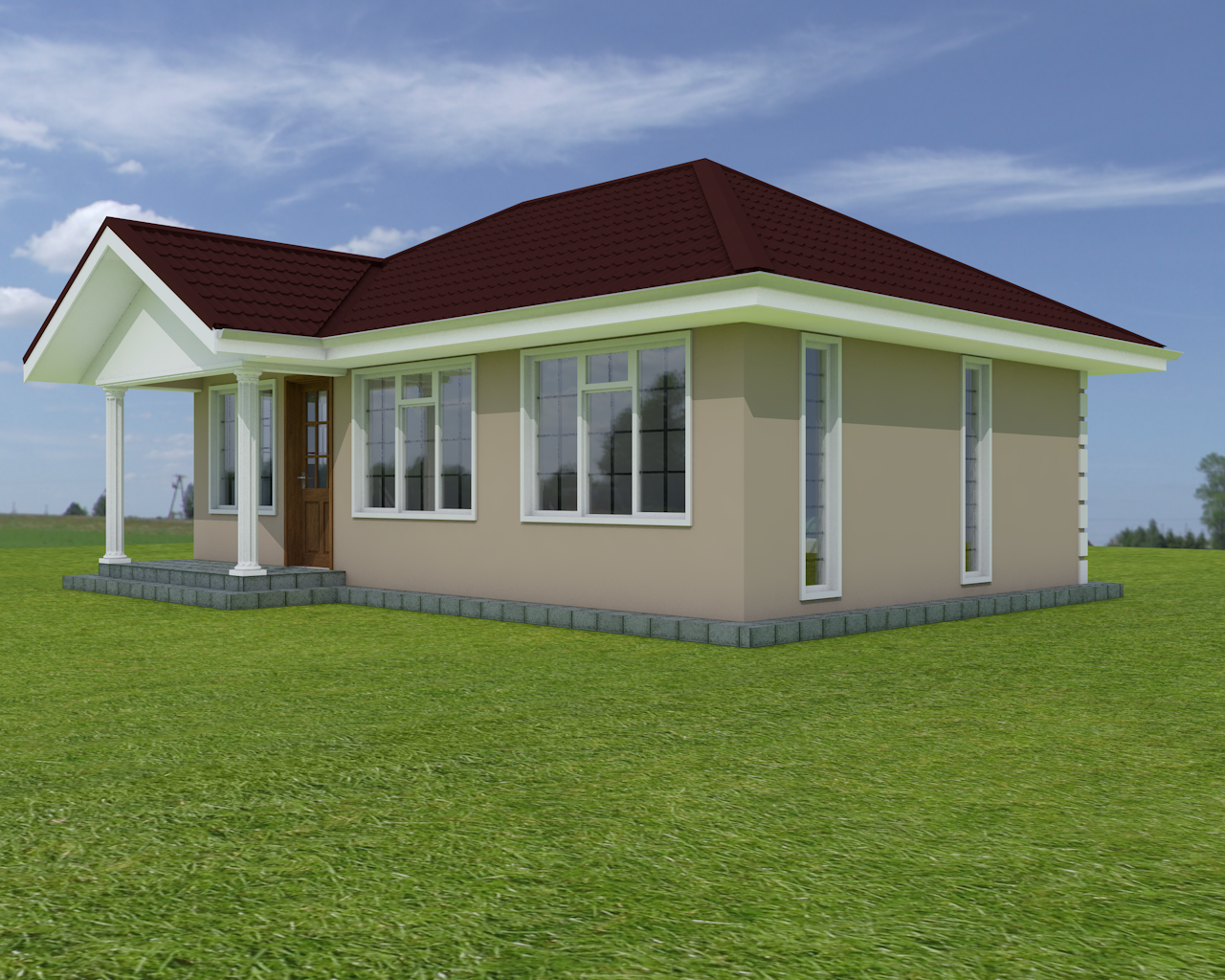 A simple two bedroom house plan. Total Plinth Area = 55 Sq. meters (8.8 x 7 meters)