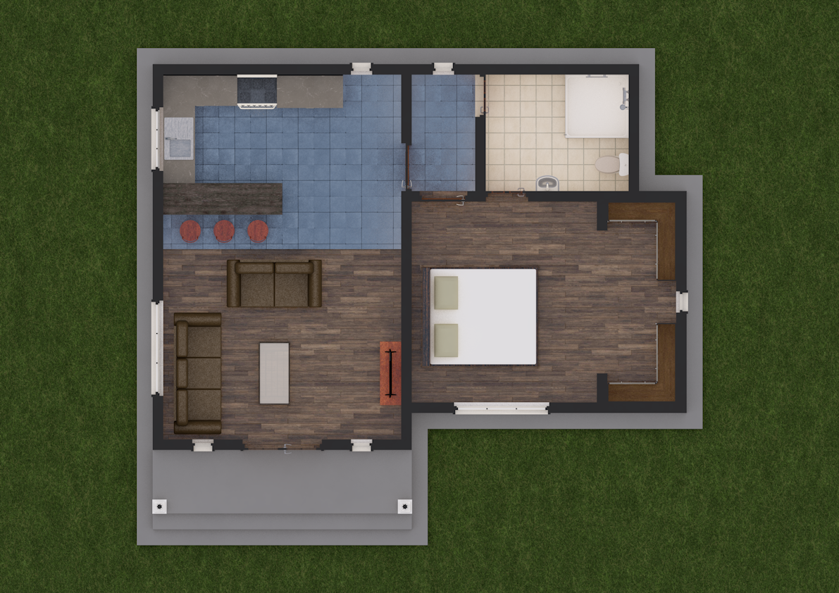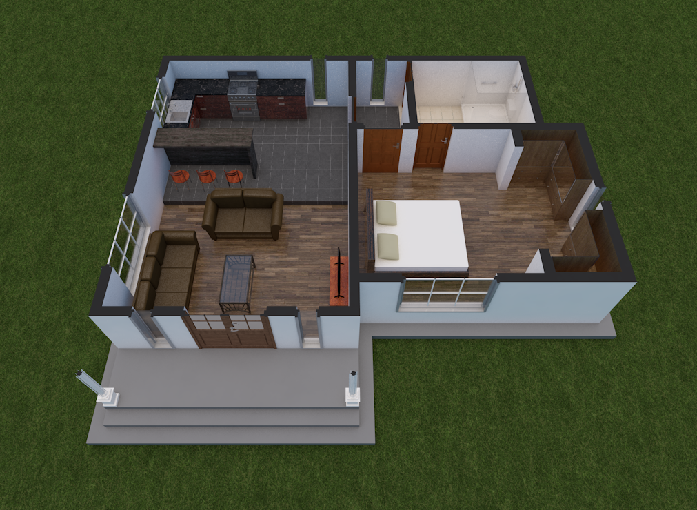 A fine One Bedroom House/Guest House plan. Total plinth area = 74 sq. meters (9.2 x 8.5 meters).