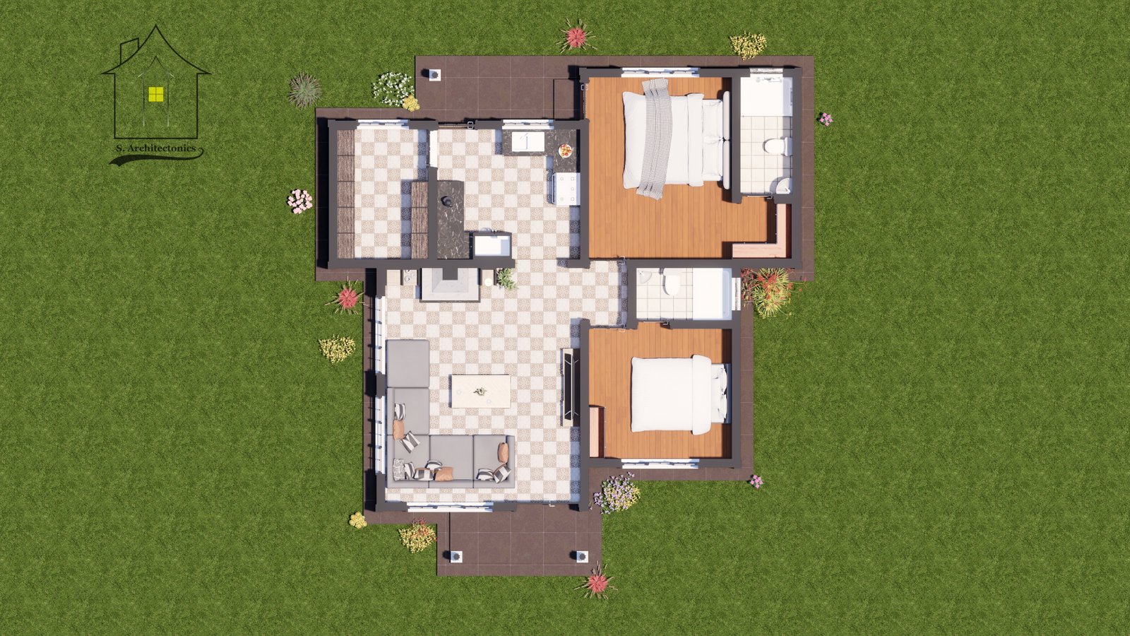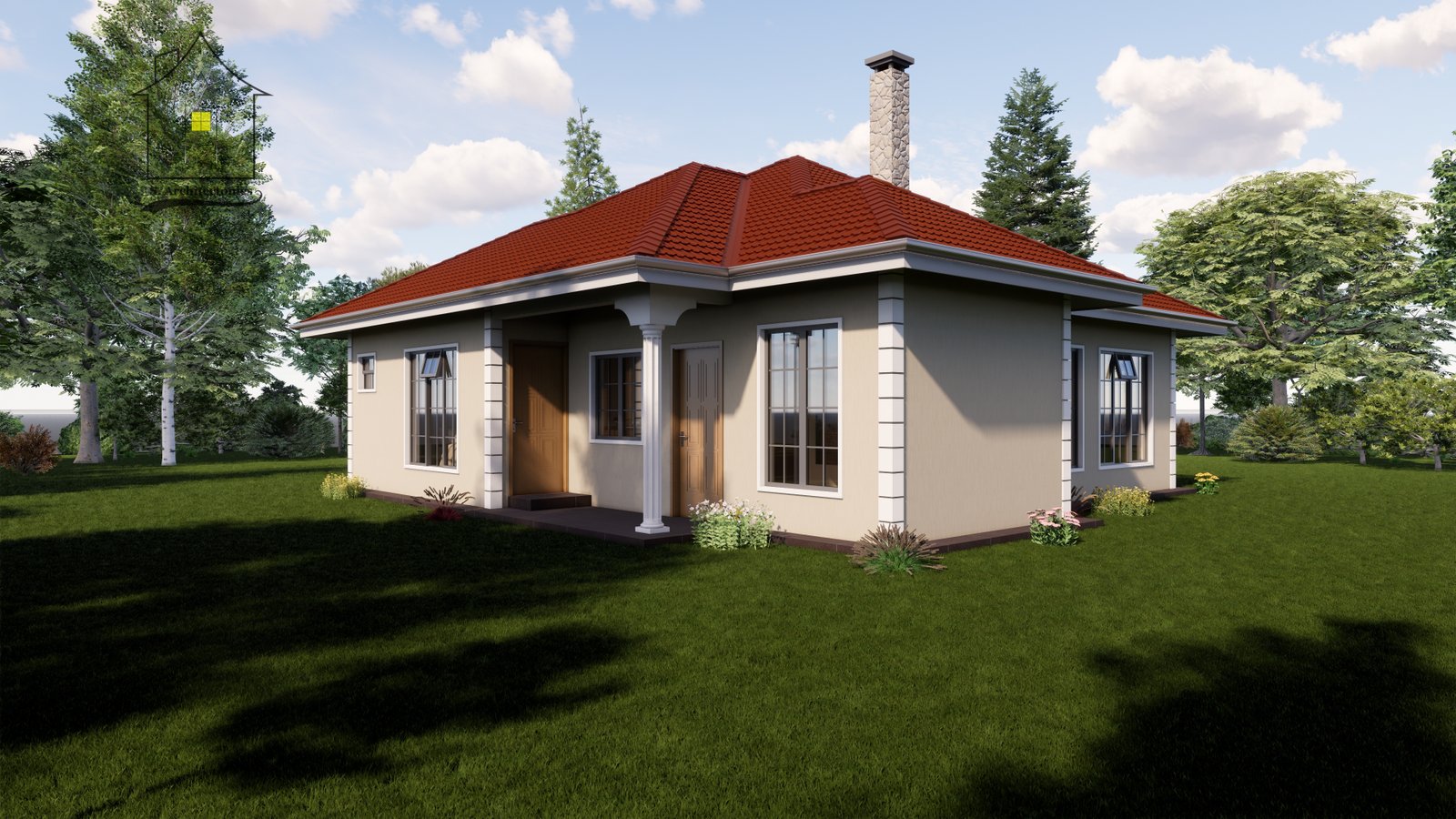 A graceful two-bedroom bungalow with a plinth area of 95 sq. meters (11.4 x 10.9 meters). An entrance porch, Lounge, Kitchen, Store, Rear porch, Master bedroom (ensuite) with an access to the rear porch, An extra bedroom (ensuite)
